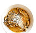 Culinary delight, with veggies, meats, and sauces. Your pasta tubes, perfectly al dente, in every bite, brings taste so plenty.