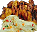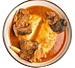 Made by pounding boiled yams, plantains and cassava into a smooth dough-like consistency. Alongside soups light soup or groundnut soup.