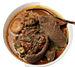 Slow-cooked lamb or chicken and spiced rice. The meat is cooked in a tandoor oven, giving it a smoky, tender flavor, while the rice is seasoned with fragrant spices like cardamom and cloves.