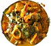 Oceanic delight, With shrimp, squid, and fish.